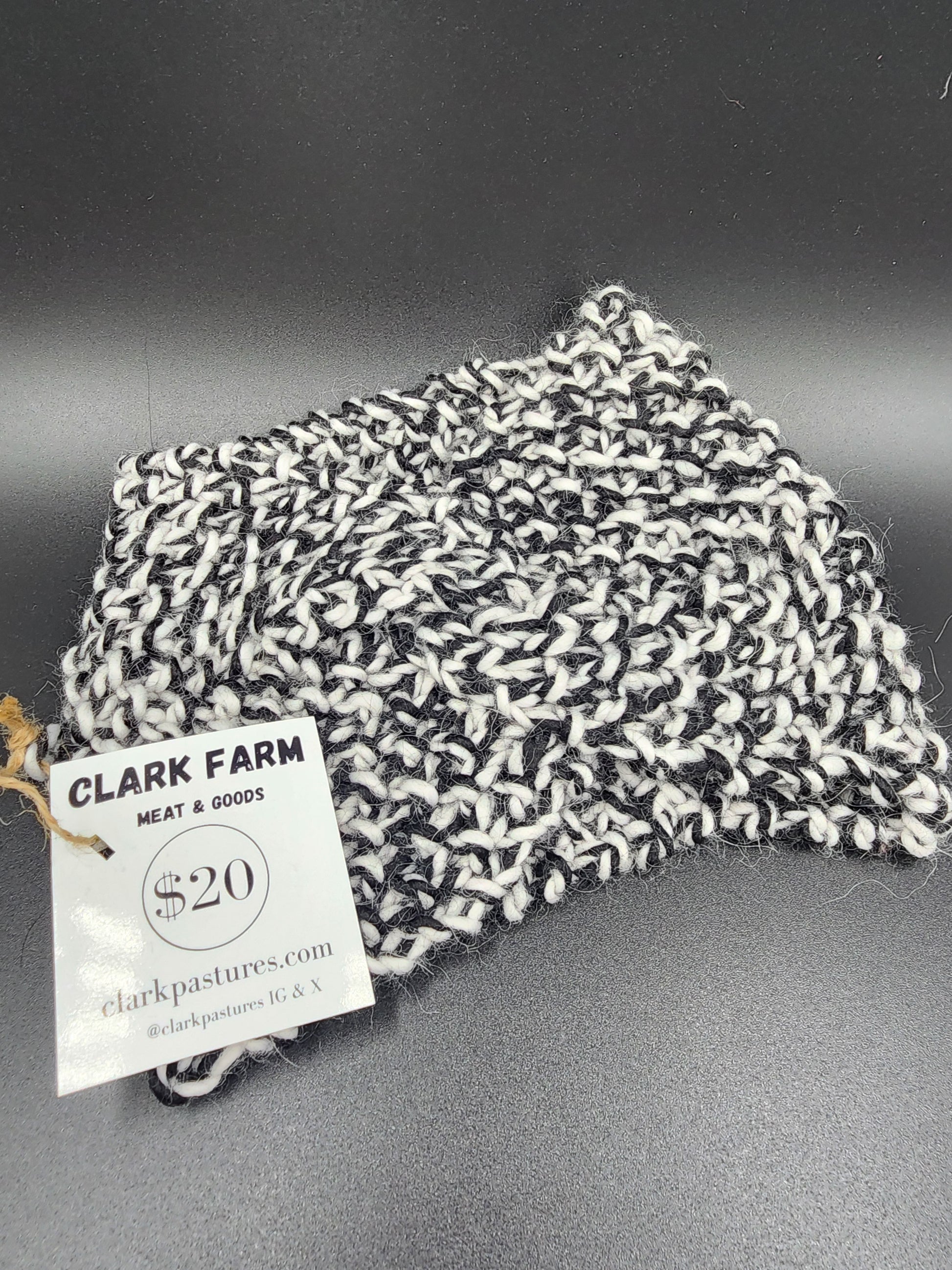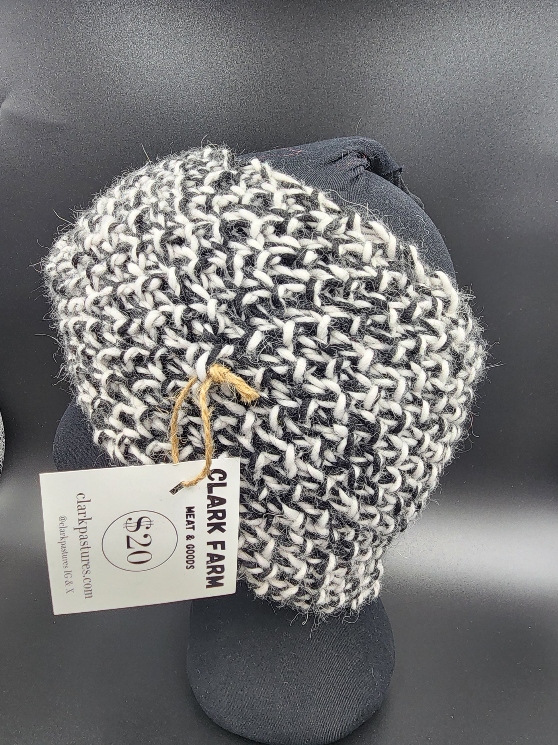 Crafted for warmth and style, this earwarmer headband features a black and white design with a wide twist, knit from locally-produced alpaca yarn. Keep your ears cozy with this luxurious accessory.