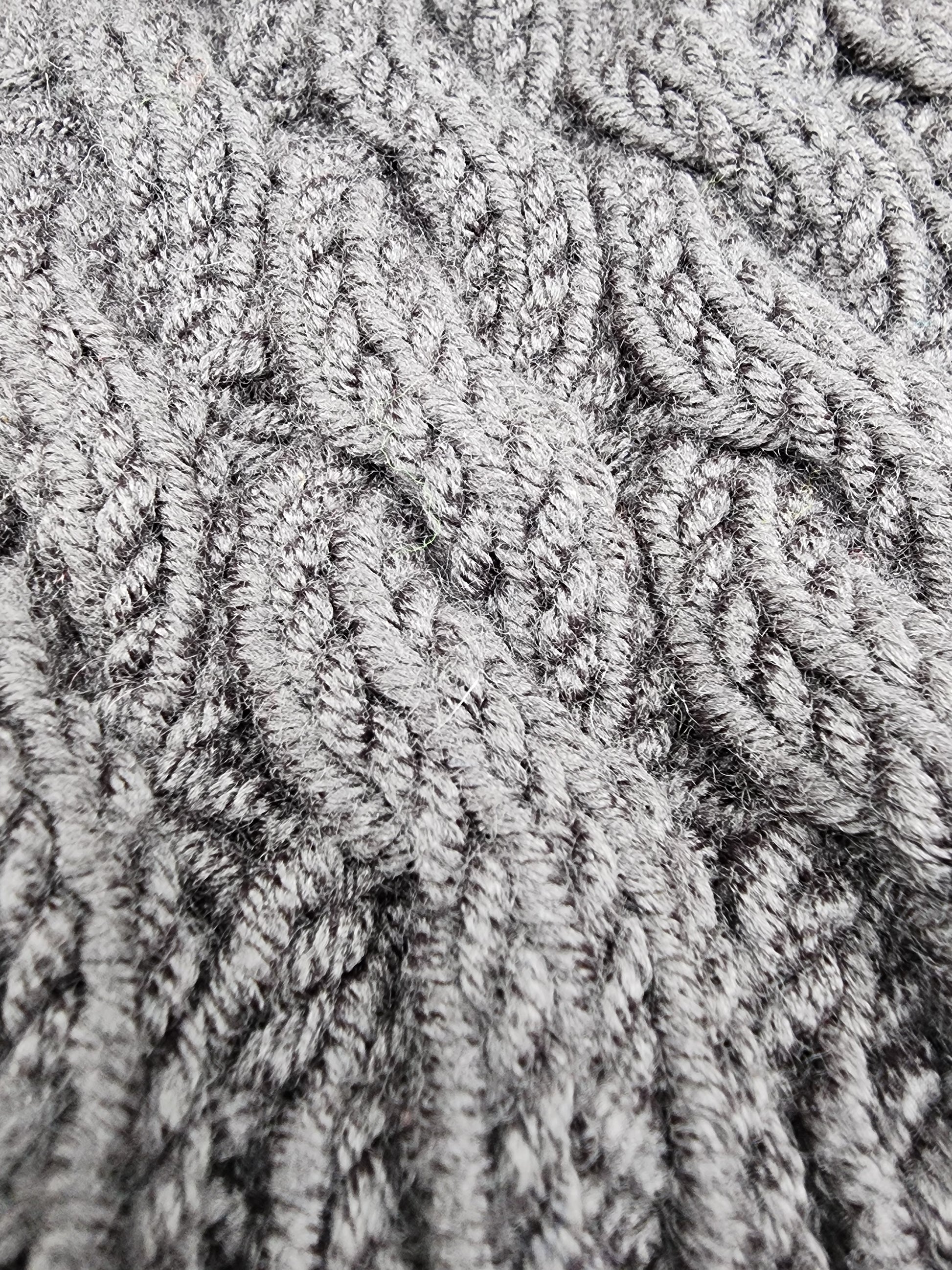 Chunky Grey Cable Knit Hat Acrylic Yarn
