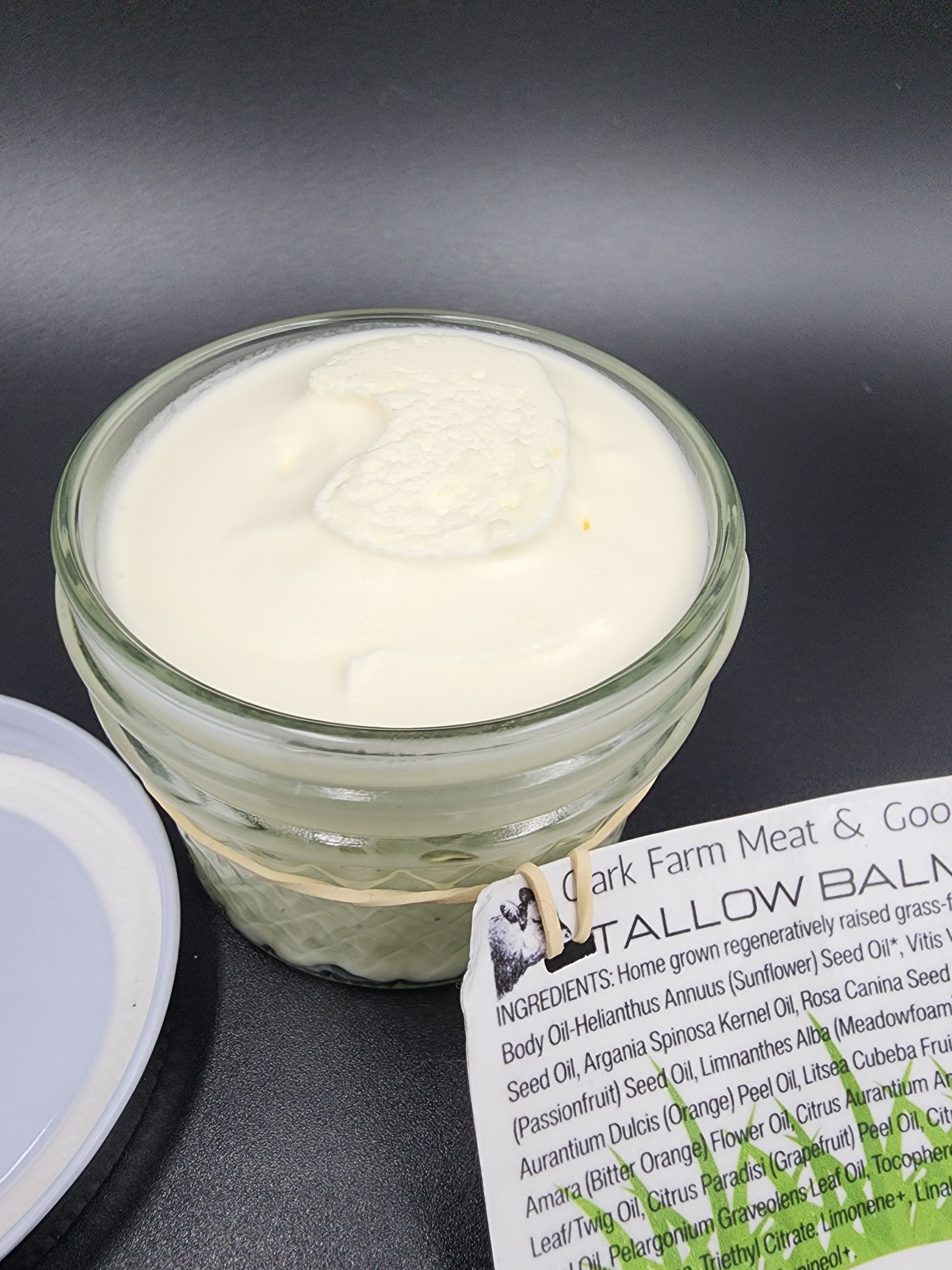 A light whipped tallow bomb with a light Neroli scent from Counter brand Body Oil. The tallow is sourced from our own farm raised beef.