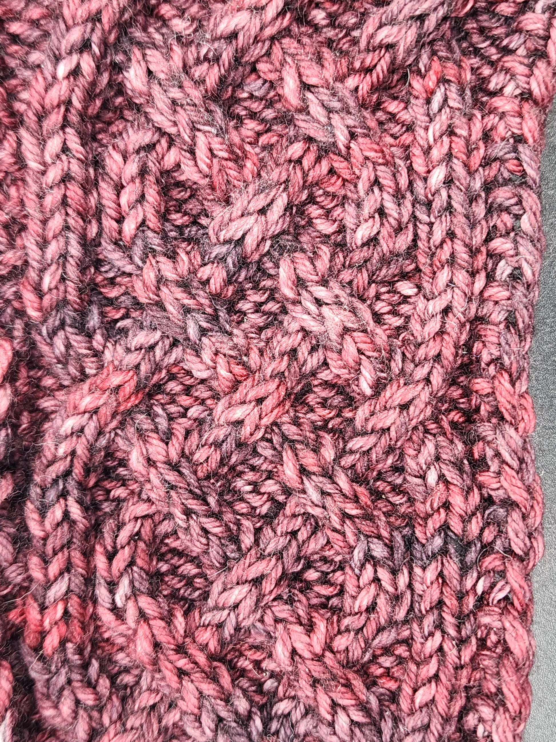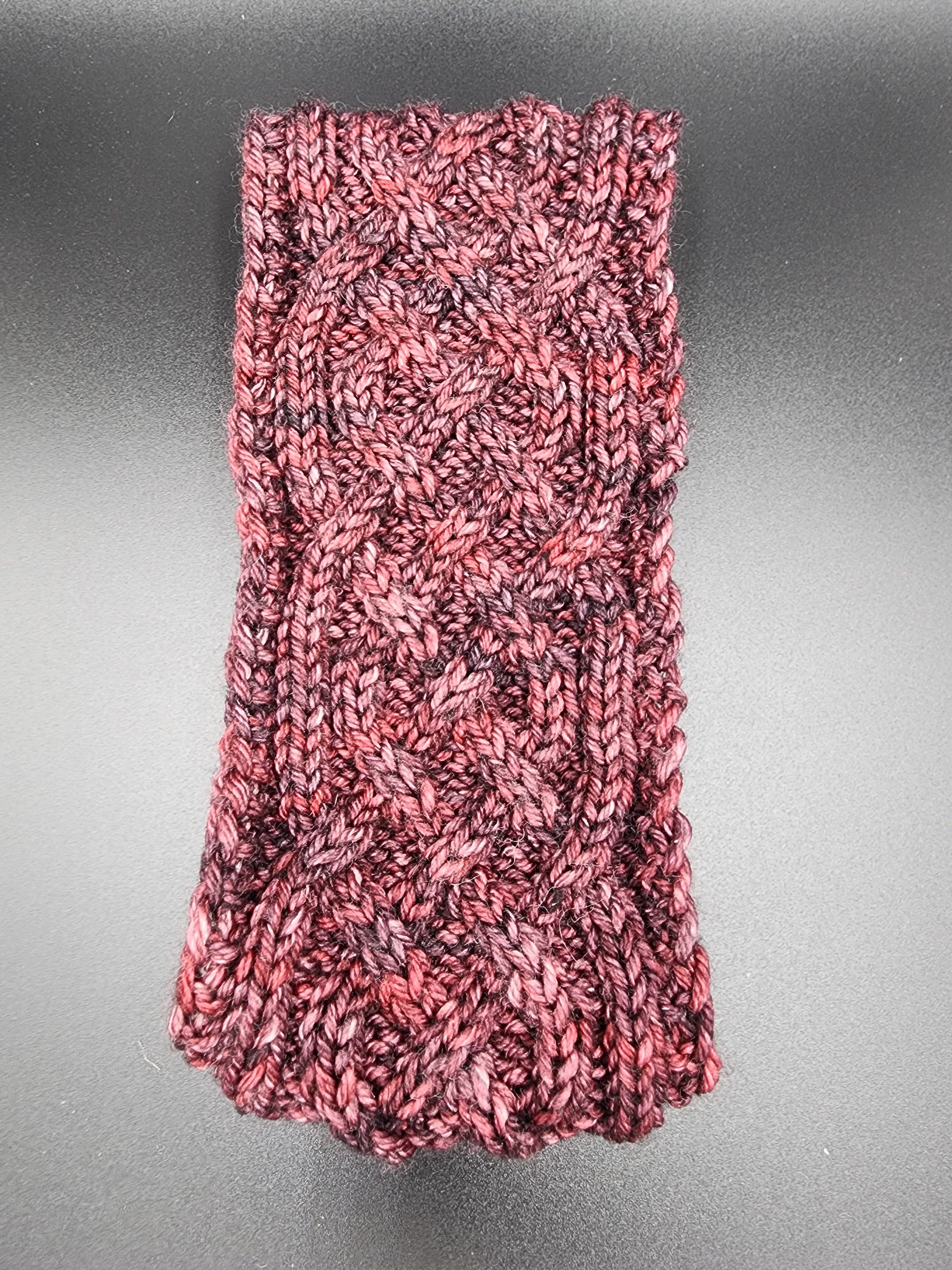 Hand knit in soft Merino wool this stylish cable knit headband in shades of maroon will keep your ears warm & cozy all winter.